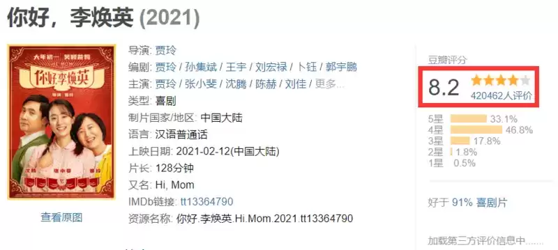 口碑、票房双逆袭,从15号开始蝉联单日票房第一,豆瓣评分也从8.1涨到8.2。