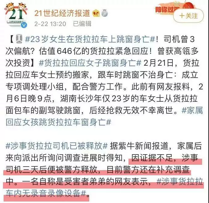 关于23岁女生从货拉拉车上跳窗身亡,有几句话不吐不快。。。