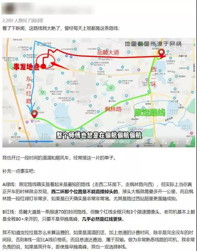 知乎上就有经常跑这条线路的老司机站出来指出货拉拉司机走这条“偏航”路线也有合理性:比原定路线更快,不容易堵。