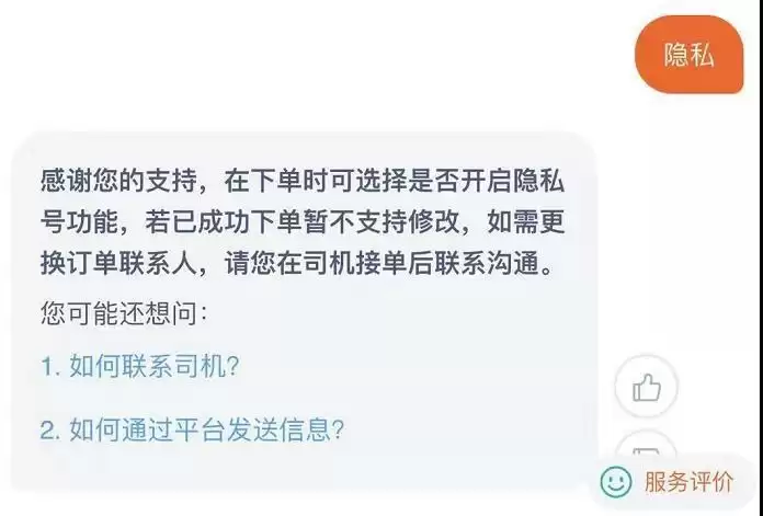 我输入了隐私这个关键词,在线客服正常返还了回复。