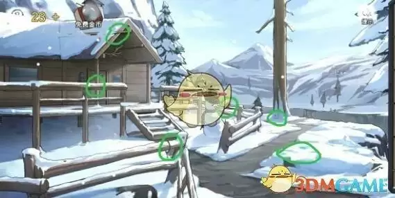 拾取地上的石像,放在右边的台子上得到滑块,台子右边有把碎石块,捡走。树干中间有半把剪刀,上面有鸟巢。用滑块打开树屋楼梯上的机关拾取雪鞋,组合剪刀剪开袋子得到浮雕。用浮雕打开小木屋衣柜里的眼形凹槽盒子获得滑雪杖。