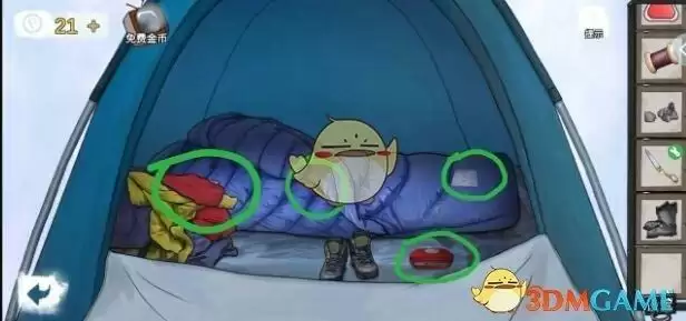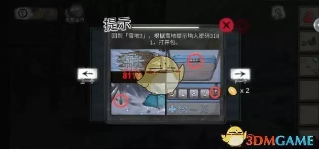 根据雪地2密码提示打开雪地3的背包,拾取线卷。