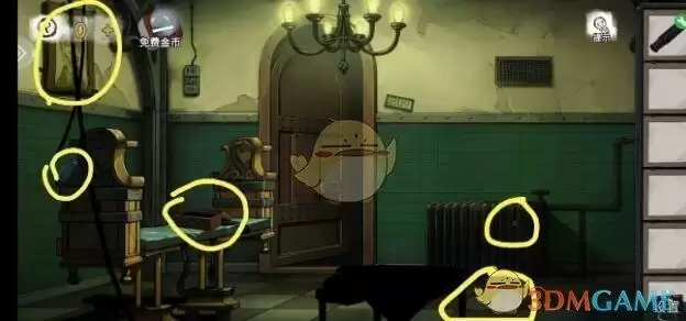 椅子上有把手,打开桌子上的抽屉得到拨片。地上有地缝,书桌上有墨水,书本里有开门的线索和镇静剂的制作方法。