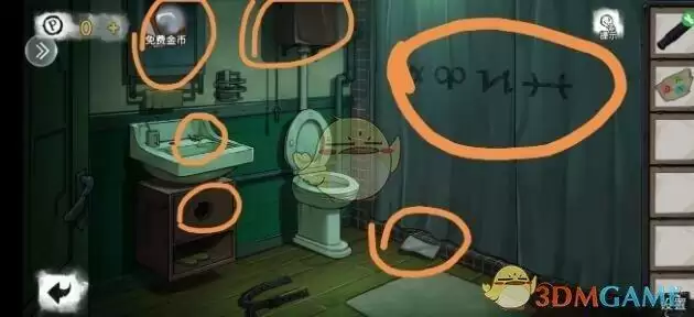 先去走廊用凿子撬开把之前调查的地板砖获得拉杆和金属装饰,再把木块放到钟表下方的凹槽里得到把手,回到浴室用扳手拧开这里玩一个轻松的小游戏,把水龙头安在洗手池上,回到之前挪开地毯的房间,将把手安在地毯下面的盖子上,用螺丝套装固定后打开,得到巨型针筒,把金属装饰嵌入盒子得羊头。