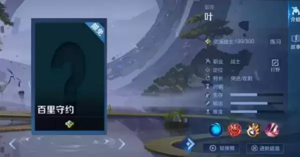 3、我们可以看到叶在游戏中的定位是战士,带有突进和收割的能力。