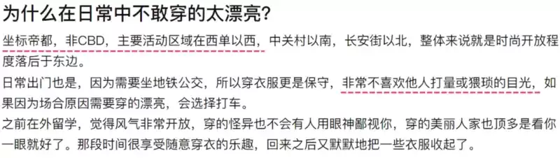 在魔都也会有这种感觉,夏天穿露肤多的衣服,在时尚的街区感觉自己平平常常,毕竟路上的精致小姐姐太多了。同一身衣服逛完街回郊区,却会被上下打量。