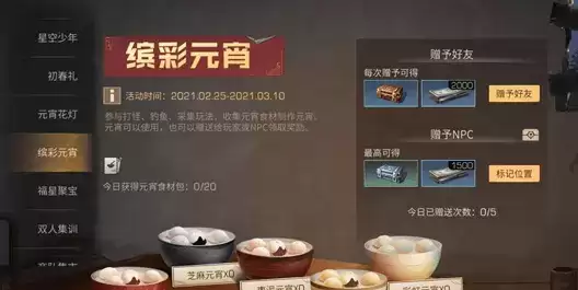 可以将这些各式各样的元宵赠送给好友,且在每次赠送后,都会得到一个元宵精致礼盒和大量新币。