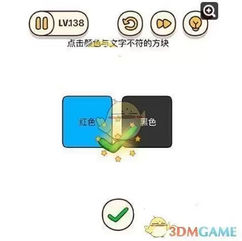 《烧脑大师》手游是一款非常益智休闲的小游戏,游戏第138关【点击颜色与文字不符的方块】怎么过呢?下面是3DM手游网小编给大家带来的《烧脑大师》手游第138关通关攻略答案介绍,还不清楚具体如何过关的小伙伴一起看看吧。