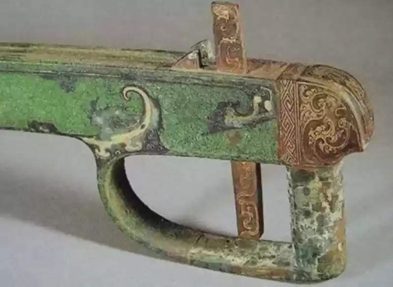 弩扣弦的牙有两个,牙中间向前延伸出一个槽