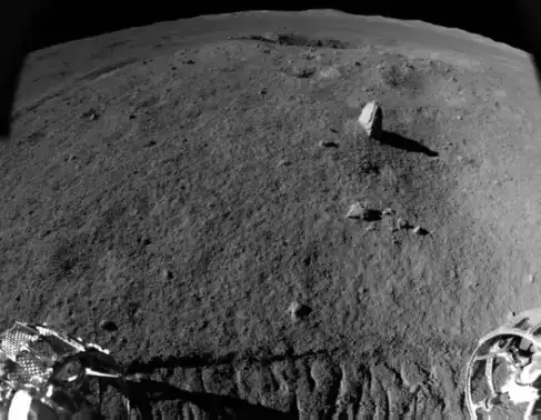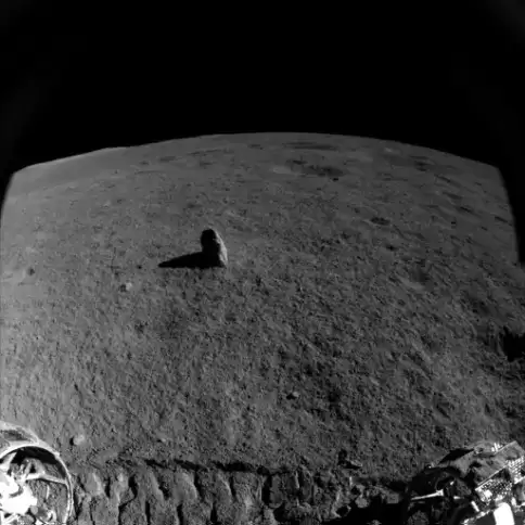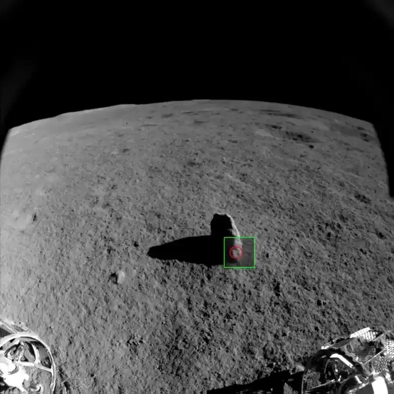 18米外遥望南方的石笋整个月昼上午节奏紧凑,有条不紊,在三次移动后,玉兔二号赶在月午前抵达了“石笋”附近,此时车体阴影挡住了目标,似乎在劝说玉兔睡个午觉,再探“石笋”,我们只好等玉兔午休醒来继续探测。