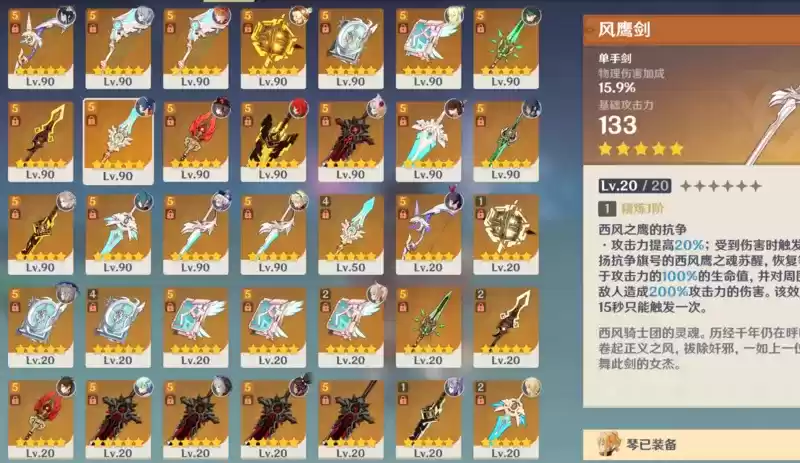 风鹰剑:物理流刻晴的毕业武器,没有好用的五星单手剑时也可以使用