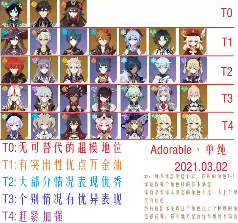 本帖不会对这几个角色以及本帖写完之后的1.5角色进行评测,因为本人确实不够熟悉,不想当云玩家,这里说一声抱歉