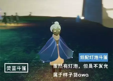 官方名字叫做萤蓝斗篷,就是虽然有灯泡,但是不发光,是从二级背背先祖这里可以兑换得到。只有充能的时候才有光效。目前复刻先祖在晨岛。