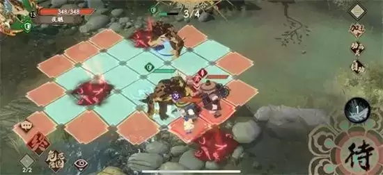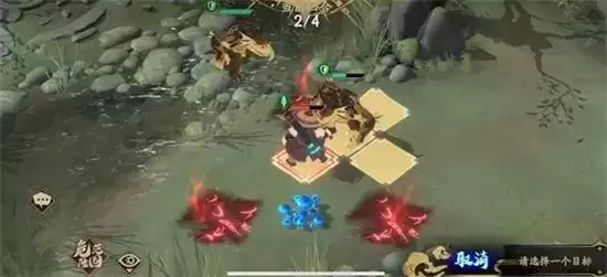 6、残血的己方夜魑走下来,到陷阱右边,这个时候站位就是陷阱边上一边一个,敌方侠客会走到陷阱上来击杀我方残血,回合结束后直接触发陷阱,游戏结束