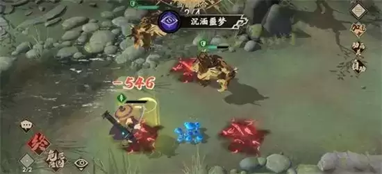 2、右边的夜魑用技能拍,因为前一只挡住了位置,所以这个怪刚好被拍在陷阱上,卒