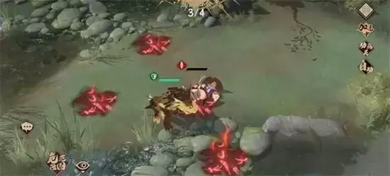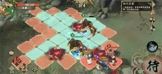 3、敌方行动,这时候左下角的侠客会过来打你第一只挡路的夜魑,但不会打死,直接反手技能给他拍陷阱上,卒