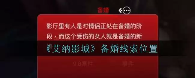 《艾纳影城》是由孙美琪疑案开发团队开发制作的趣味解谜推理类游戏,这次我们将来到一所影城进行探索,本案将在电影院6号厅展开,游戏中三级线索——备婚在哪里呢?下面是3DM手游网小编给大家带来的《艾纳影城》备婚线索获取位置介绍,还不知道在哪里的小伙伴一起看看吧!