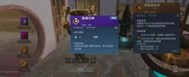 驺吾的进化丹可在三级神农鼎制作,材料是八个灵狐元神,八个狻禄元神,八个万年兽魂,以及10个霏雪骨,金色品质,获取途径尚未公布。