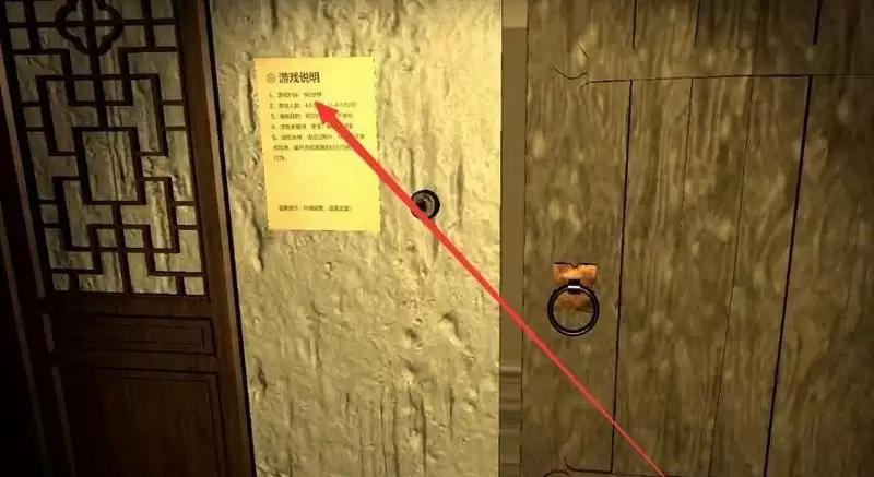 位置:在进入密室之后会发现大门关闭,这个时候查看门左边墙壁上面的纸张之后,会获得这个线索。