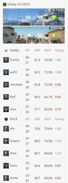 来到Dust2,在这张比较看狙击枪发挥的地图上allu完全没有输给ZywOo,全场最高的击杀以及最多的狙杀,那个熟悉的GOD allu又回来了,另外一边的法国队只有两名年轻人在杀人,apEX、RpK和shox直接化身三宝,防守方每次都成为突破口,就这样ENCE连续拿分最终16-9带走比赛。