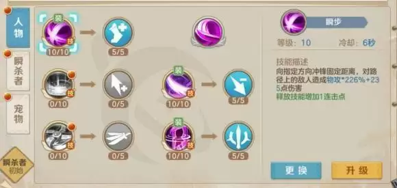 瞬杀者修炼加满,暴击伤害对瞬杀者相当重要;毁灭之刃加满10/5,AOE与暴击,也是核心技能;剑刃乱舞进阶加满10/5,续航与伤害提升;蓄势待发与反手连环加满,依旧是增加伤害与续航能力。其他的点数都加全属性。