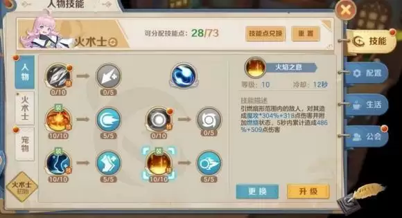 火法单体爆发高控制强,打架放风筝可越战力PK。而缺点也很明显就是段数低,如果技能没打中那就根本没伤害了。一般释放顺序是火焰之息、大地灼烧、烈焰冲击。宠物方面推荐钻石星尘龙或者大叔熊猫。加点这一块因为火法的特色是打架,所以也就只列出打架部分的。