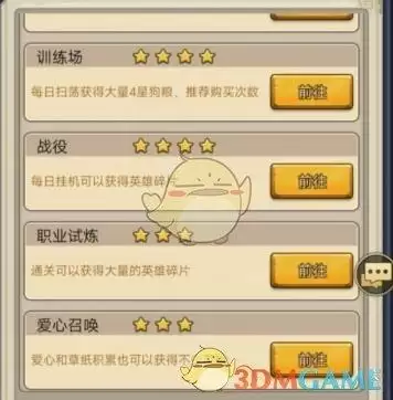 5、训练场。每日扫荡获得大量4星狗粮,推荐购买次数