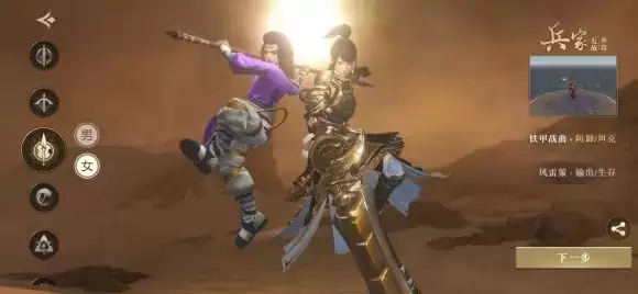 兵家是游戏里唯一的坦克,也是副本必要的角色(高难度副本必备),着重于副本PVE,PVP在团战中才会有发挥特点,铁甲战曲属于防御坦克,承担前排对BOSS的抗伤,风雷策作为一个输出类坦克,有一定的输出能力。因为对战力和属性有所要求,不推荐0氪玩家使用。