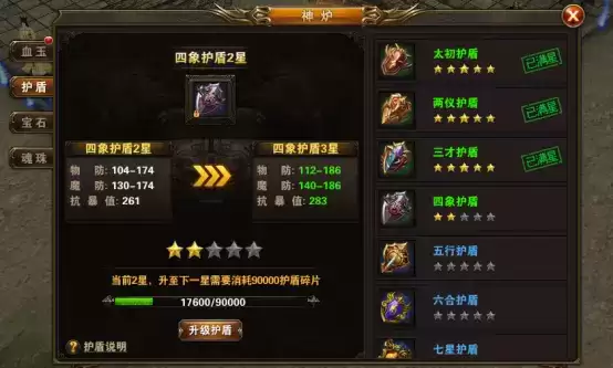 低等级的护盾可通过消耗护盾碎片进行升级,进阶为更高等级的护盾。拥有高等级护盾,再也不担心被别人一刀秒杀了。