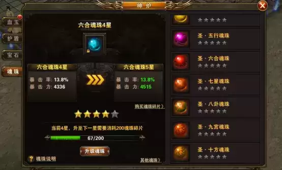 低等级的魂珠可以消耗一定数目的魂珠碎片进行升级,提升为高一级的魂珠。