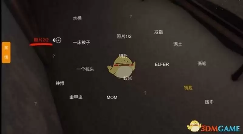 位置:找到钥匙1,打开蚊帐房的门之后,在墙壁上面获取该线索。