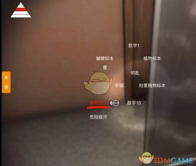 位置:在寻找到了之前的数字7、1、2、10、3。通过象形的转换成字母后可以得到L、I、Z、X、E。输入密码后将玻璃门打开。在地面上可以获取该线索。