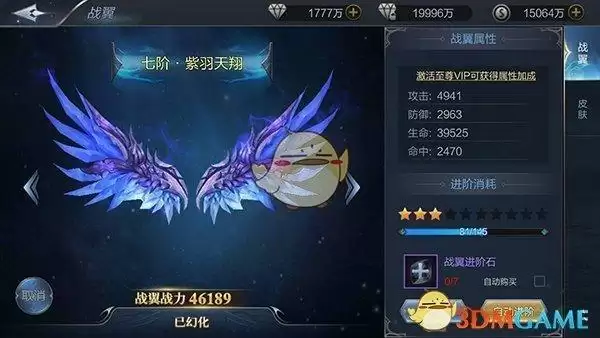 战翼通过使用战翼进阶石来提进阶