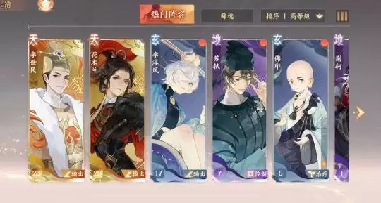阵容搭配思路:结合木兰的大招、被动等技能效果,可以看出她适合持久战,因此我们配合李白杜甫组成一个高减伤肉队,适用于后期PVP环境