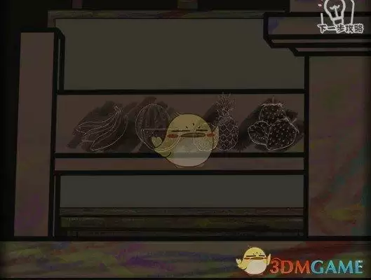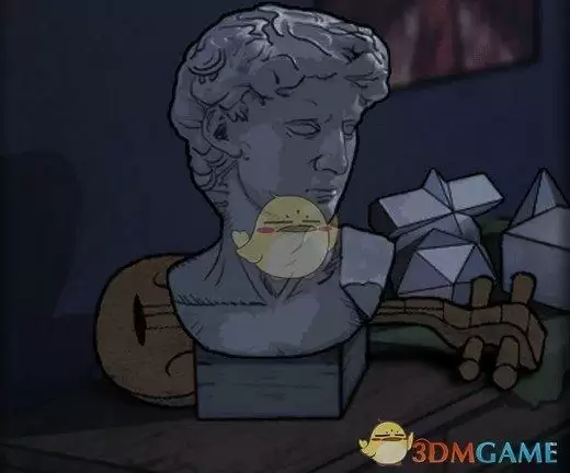 1、拾取雕塑区的钱币、木琵琶,在左下角画架刻痕涂抹,获得水果密码、1号图章