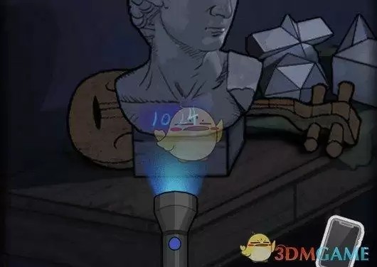 4、右上角画架抽屉中获得手电,在大卫雕塑上照射,获得隐藏密码1024