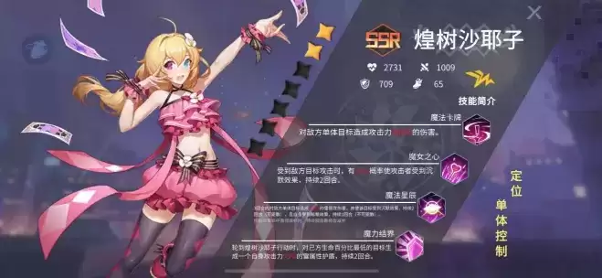 超强单控,还有很优秀的辅助能力,天生2回合沉默,可以让对方一个角色陪你罚站2回合,受到攻击还有几率导致攻击者沉默,是一个让人非常“无语”的中二少女