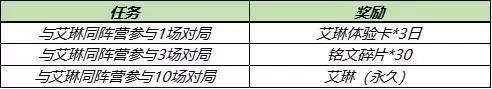注:玩家自己使用艾琳参与对局也将增加任务进度