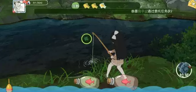 2、鳊鱼在村庄地图右下角的桥就有,放钩拉杆即可把鳊鱼钓上来。
