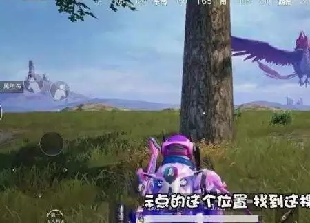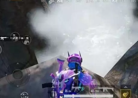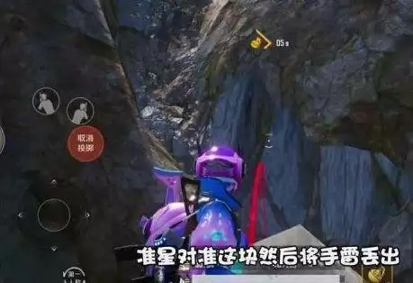 在大石头上掏出手雷,,选择低抛模式,准心对准下图这个位置,将手雷抛出(注意捏雷的时间,避免炸倒自己)