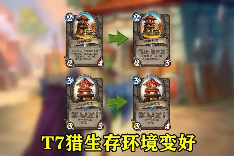 炉石传说当前版本,T7猎之所以表现强势主要有内外两方面原因。内因是T7猎在新版本收获了许多质量单卡,外因则是新补丁削弱了压制T7猎的哨所体系以及部分强势卡组。