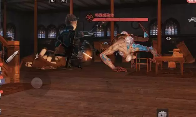 顽皮鼠下蹲蓄力,猛地向幸存者扑来,并将幸存者按在身下,幸存者需要及时挣脱压制,否则将受到更严重的伤害。