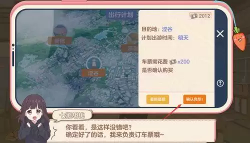 5、订票成功后就可以准备出游了,等到第二天就和胡桃出去玩。