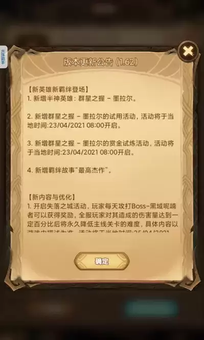 2.新增群星之握-墨拉尔的试用活动,活动将于当地时间:2021/04/23 08:00开启。
