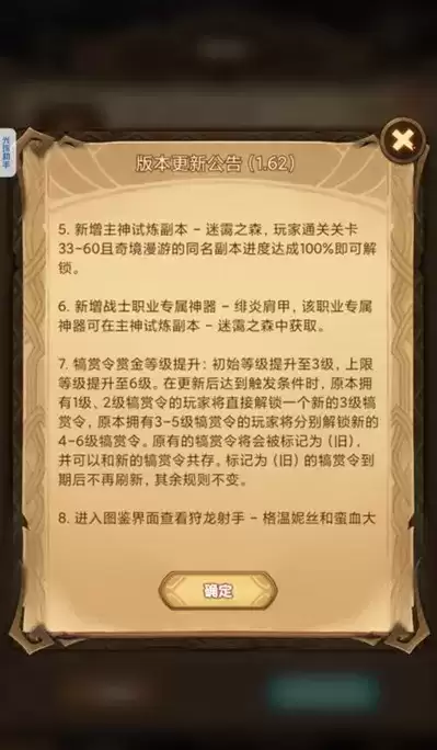 5.新增主神试炼副本-迷霭之森,玩家通关关卡33-60且奇境漫游的同名副本进度达成100%即可解锁。