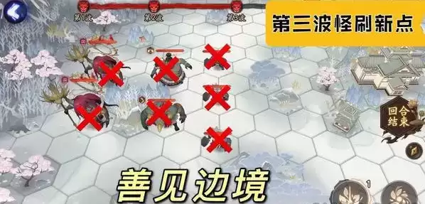 小怪过回合再把左右两边格子补上,然后一动不动当王八进第三波