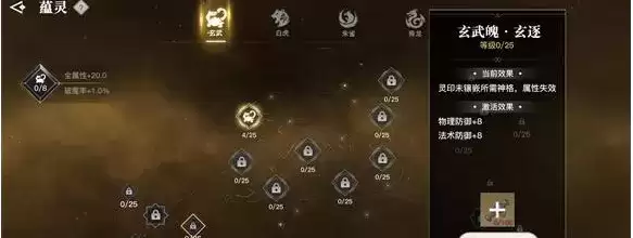 4.点亮一定数量的灵眼,可以解锁灵印位,灵印位内放入神格即可激活该灵印位的附属灵关,放入的神格品质越高,可解锁的附属灵关就越多