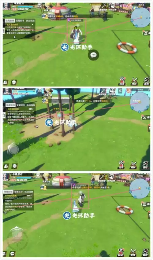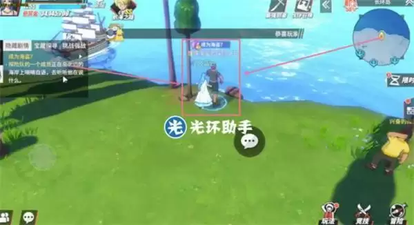 接取任务NPC在长环岛悬崖附近,正确答案分别为:“7人”,“1次”和“花生战法”,如图: