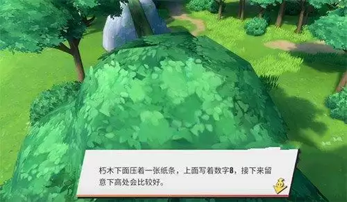 第二个线索:玩家在秘密基地下面沿着海边走,来到森林,然后就可以发现这个树下面可以进行调查,随后就可以得到第二个线索密码。