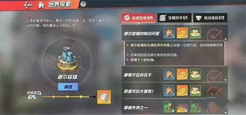 然后第二个城市谢尔兹镇的话就是28级开启,之后的城镇大部分都是隔个3-5级之后开启,玩家可以完成探索度,然后就可以得到藏宝图,可以拿来获取各种资源。比如召唤卷、金果子等等。